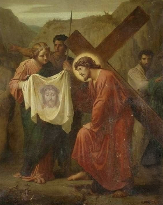 “O My Jesus! Cast upon us a look of mercy; turn Thy Face upon each one of us, even as Thou didst upon Veronica; not that we may see It with the eyes of our body, for we do not deserve this; but turn IT towards our hearts, that being sustained by Thee, we may draw from that powerful source strength for the combats we must ever wage on earth. Eternal Father, we offer Thee the Adorable Face of Thy Well-Beloved Son for the honor and glory of Thy Holy Name and for the salvation of all men.”